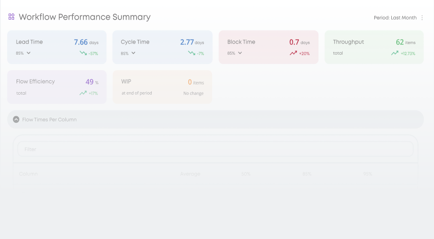 Get instant insights into your most important performance metrics. Collect historical data and forecast project delivery with confidence.