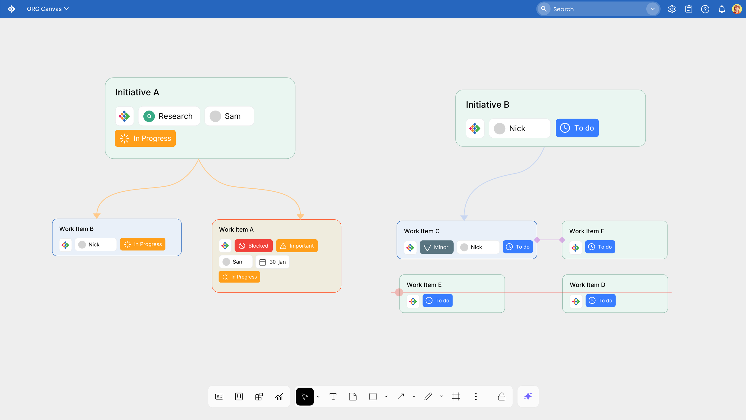 • Stwórz hierarchię tablic, aby wizualizować zarówno portfel, jak i pracę zespołową