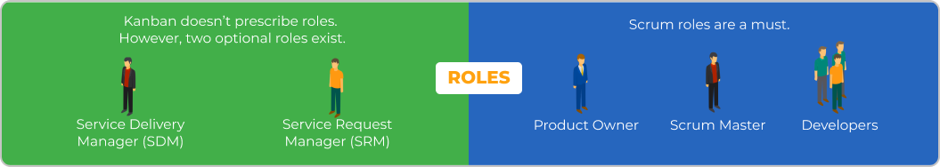 Kanban pozwala na zachowanie aktualnej struktury bez dokonywania drastycznych zmian. Istnieją jednak dwie role w Kanban, które można wprowadzić, lecz nie są one w żadnym razie obowiązkowe: