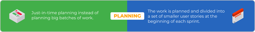 W Scrum praca dzielona jest na mniejsze zadania, który muszą być ukończone w predefiniowanym przedziale czasu, nazywanym sprintem. Ponadto dodanie nowego elementu pracy podczas sprintu jest niezalecane. Taki nowy element pracy będzie czekał na następny sprint, co zmniejsza możliwości zespołu reagowania na zmianę.
